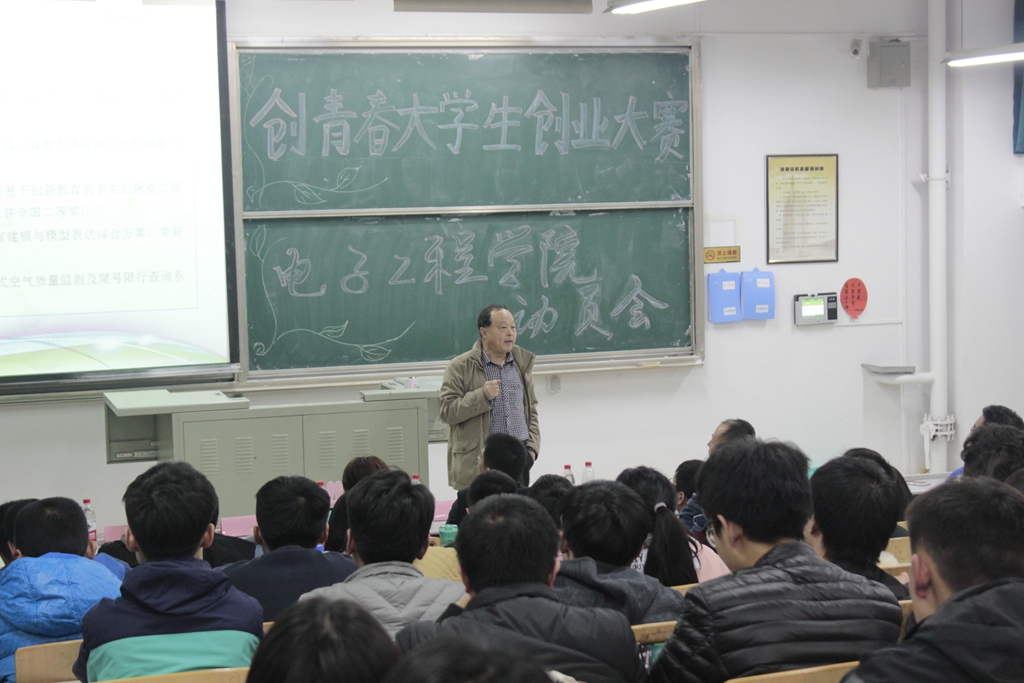 本网讯 11月28日下午,电子工程学院在基础教学楼举办第二届“创青春”大学生创业大赛动员会,该院党委书记马斌奇主持动员会。