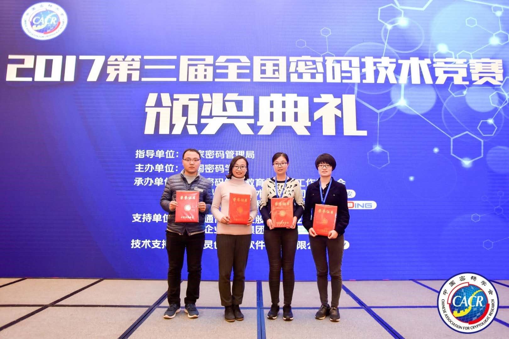 竞赛面向全国大学生,由中国工程院院士蔡吉人、中国科学院院士密码学家王小云教授等20余位国内顶尖密码学专家担任评审,全国共138个参赛团队报名参加比赛。参赛团队必须从8000余道专业题组成的题库中闯关成功,才能具备参赛资格,闯关后共有来自全国26所高校的64支队伍进入决赛。必赢信息安全实验室教师刘意先担任领队,杨中皇教授、赵庆兰副教授指导,研究生宋新龙、高婵和石玉组成的“苦咖啡”团队凭借参赛作品“基于国密的Android安全系统”进入决赛,荣获全国二等奖。