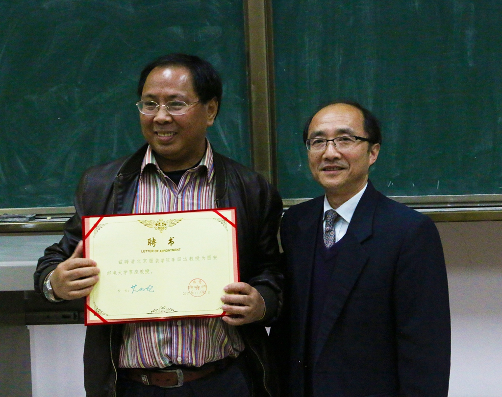 本网讯 11月15日下午,北京服装学院教授、计算机基础研究会数字创意委员会副主任、中国图形图像学会数码艺术委员会委员李四达教授应邀来校进行学术交流,在长安校区东区逸夫楼作题为《人工智能时代的媒体艺术:趋势与未来》的学术讲座。数字艺术学院院长马力为李四达教授颁发客座教授聘书,学院相关负责人及专业教师和数媒、编导专业学生参加报告会,该院副院长闫兴亚主持讲座。