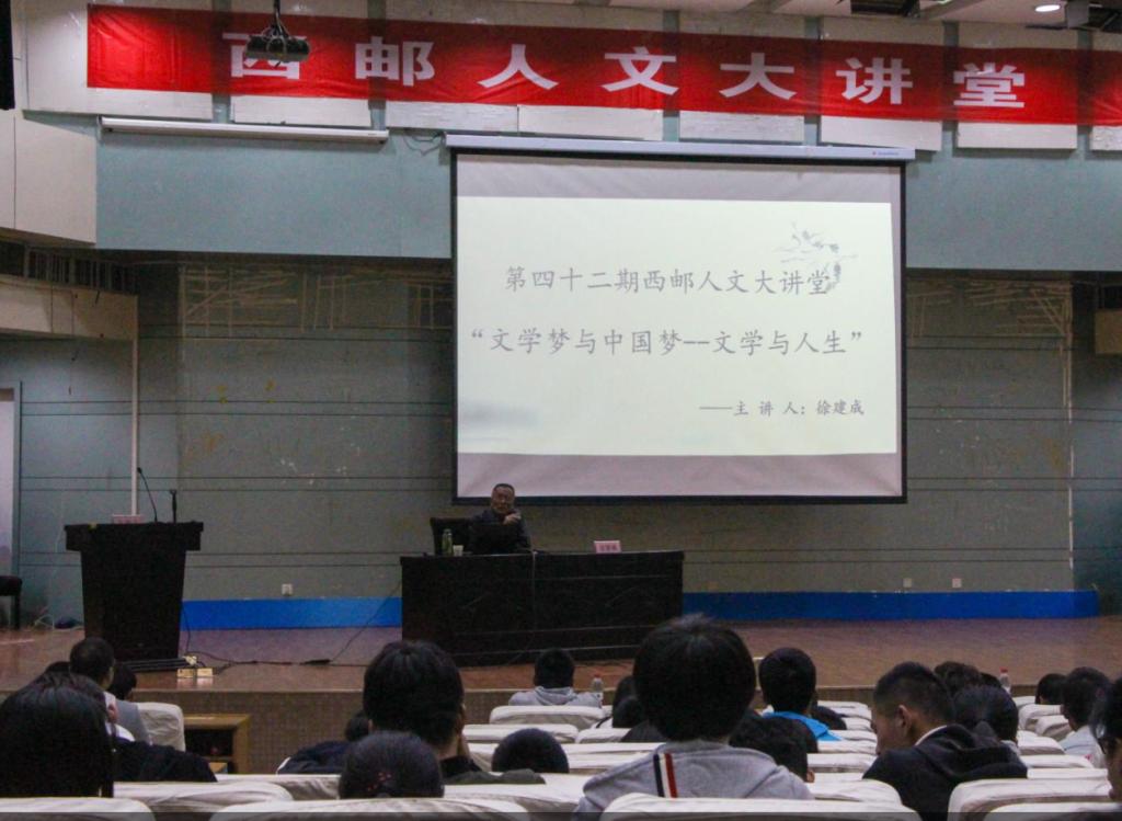 会上,徐建成介绍了文学追求与文学爱好的三个层次,并就追求文学艺术可以丰富精神生活、创造精神财富、成就文化品牌进行了深刻的阐释。他强调了文学创作的三种状态,并就自身的经历向大家阐明文学创作的成功条件。徐建成表示,爱好文学对理工科学生具有重要的辅助作用,不但能使自身专业知识更上层楼,还能扩大自己的知识面,提高自己的人格魅力,丰富自己的人生。梅永刚在总结中希望西邮学子不但要有工匠精神,更要有成为大匠的志气,要将人生与文学相结合,使自己的大学生活变得更加绚丽多彩。