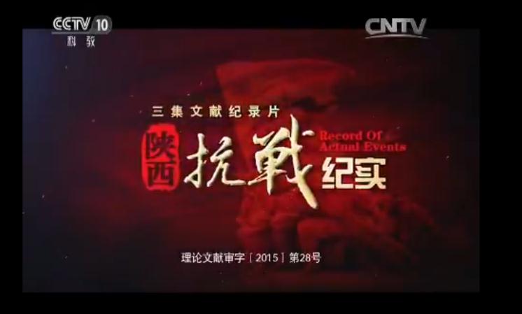 2015年12月29日至31日,中央电视台科教频道《探索.发现》:三集纪录片《陕西抗战纪实》