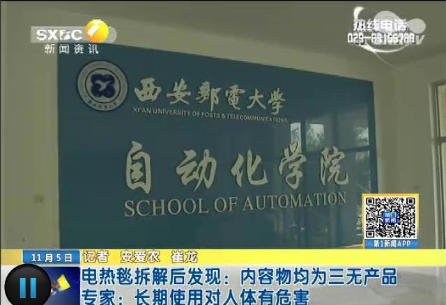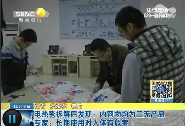 2015年11月5日,陕西电视台《第一新闻》:电热毯拆解后发现内容物均为三无产品 长期使用对人体有危害。