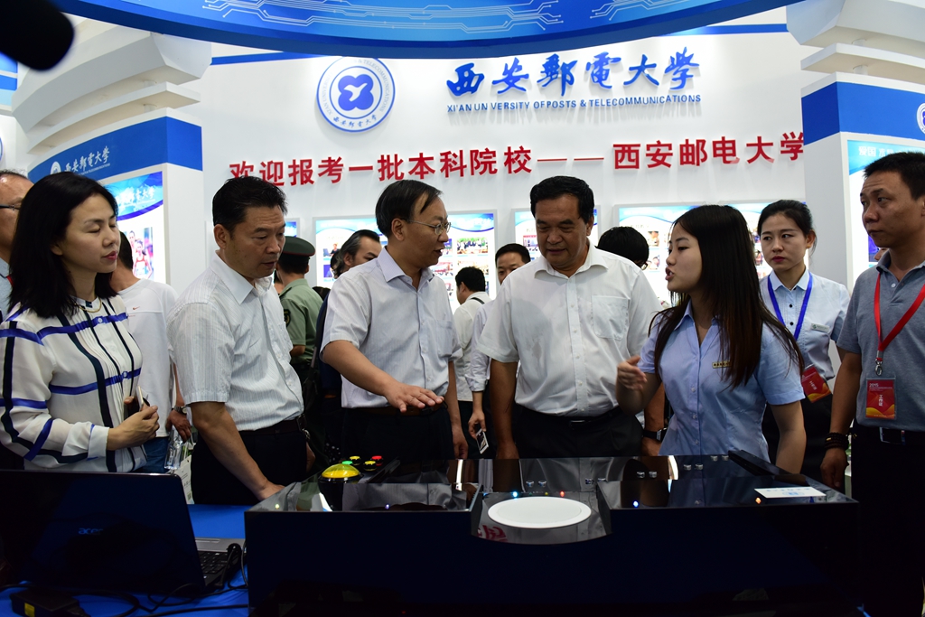 | 陕西省委高教工委书记李仲为、教育厅厅长李兴旺参观西邮学生创新成果 |