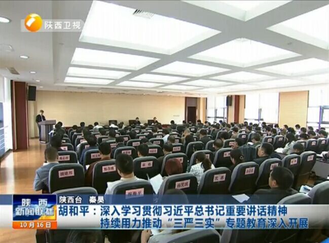 2015年10月16日,陕西电视台《陕西新闻联播》胡和平:深入学习贯彻习近平总书记重要讲话精神 持续用力推动“三严三实”专题教育深入开展