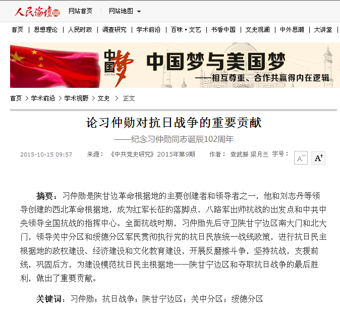关键词:习仲勋;抗日战争;陕甘宁边区;关中分区;绥德分区