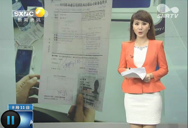 2015年8月11日,陕西电视台《第一新闻》盗刷信用卡买两个“苹果6”。