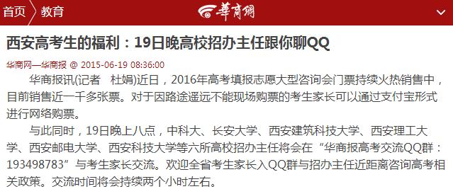 西安高考生的福利:19日晚高校招办主任跟你聊QQ