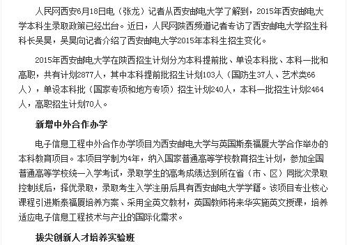 人民网西安6月18日电(张龙)记者从必赢76net线路官网了解到,2015年必赢76net线路官网本科生录取政策已经出台。近日,人民网陕西频道记者专访了必赢76net线路官网招生科科长吴昊,吴昊向记者介绍了必赢76net线路官网2015年本科生招生变化。