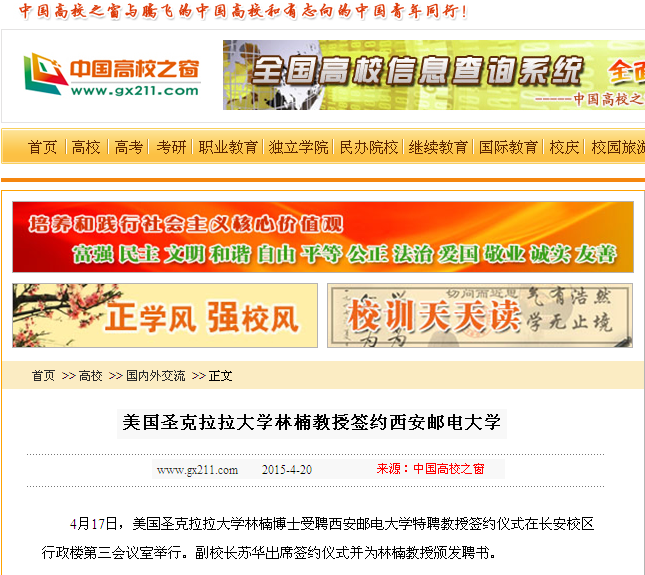 学校办公室、教务处、科技处、人事处、财务处、国有资产管理处、研究生院(学科建设办公室)、通信与信息工程学院相关负责人参加仪式。林楠(Prof. Nam Ling)教授,1989年12月美国路易斯安那大学博士毕业,现任美国圣克拉拉(Saint Clara)大学计算机工程学院主任、终身教授。