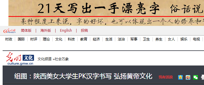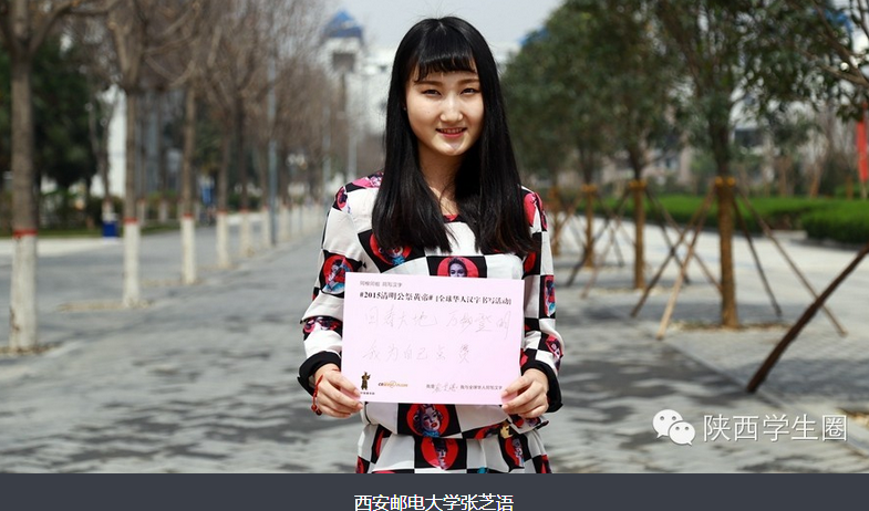 每年清明,全球华人代表、社会各界人士都会聚集到陕西省黄陵县乔山华夏始祖轩辕黄帝陵前,举行公祭典礼和民间祭奠活动。在2015年清明即将来临之际,陕西近40所高校的美女大学生,PK汉字书写,弘扬传统文化,表达对黄帝文化的认同。