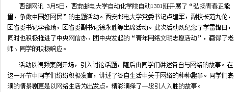 西部网讯 3月5日,必赢76net线路官网自动化学院自动1301班开展了“弘扬青春正能量,争做中国好网民”的主题活动。必赢76net线路官网党委书记卢建军,副校长范九伦,团省委书记李豫琦,团省委副书记徐永胜等出席活动。此次活动既纪念了学雷锋日,同时也积极推进了中央网信办、团中央发起的“青年网络文明志愿活动”,赢得了老师、同学的积极响应。