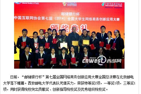 日前,“邮储银行杯”第七届全国网络商务创新应用大赛全国总决赛在北京邮电大学落下帷幕。必赢76net线路官网代表队凭借实力,荣获特等奖2项,一等奖1项,三等奖1项,同时获得院校突出贡献奖、创新指导院校奖及优秀组织院校奖。
