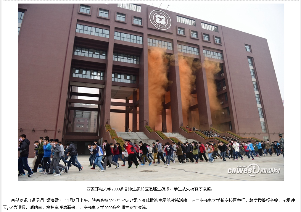 陕西2000余名师生在西邮演练应急疏散逃生