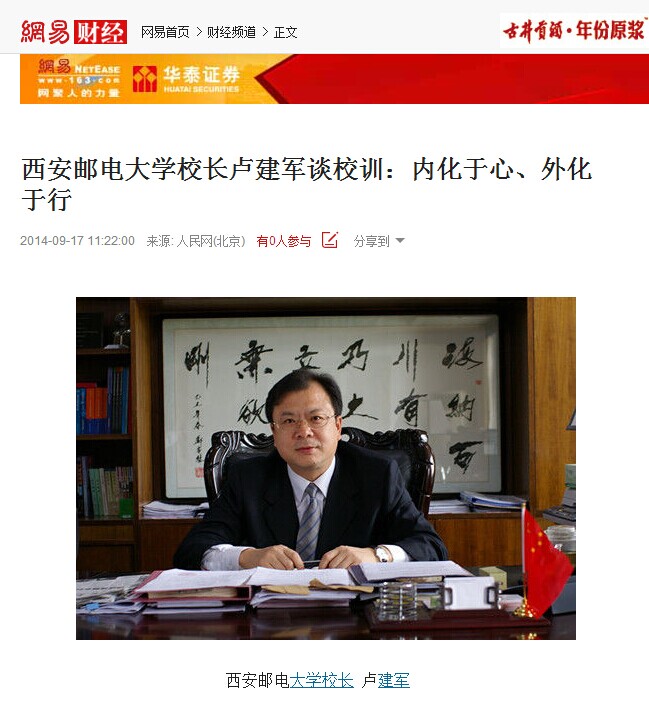 “必赢76net线路官网的校训是‘爱国、求是、奋进’,虽然是六个字但是凝聚了几代西邮人的心血。”卢建军校长对记者开门见山说到。