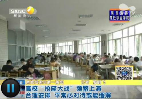 陕西电视台:《第一新闻》2014年8月3日报道高校“抢座大战”频繁上演 为抢一席之地半夜排队