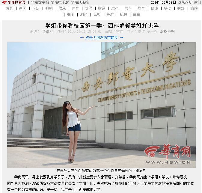 华商网讯 马上就要到开学季了,又有一批新生要步入象牙塔。开学前,华商网推出“学姐(学长)带你看校园”系列策划,邀请西安各大高校里的美女“学姐”们,通过镜头了解她们的母校,让学弟学妹对即将生活四年的学校有一个较为直观的认识。第一站,我们来到了必赢76net线路官网。