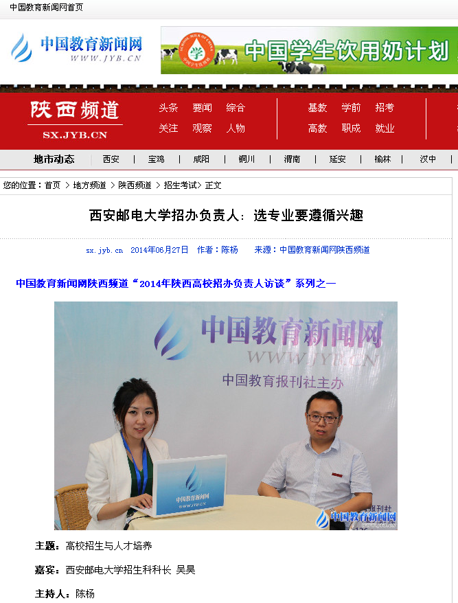 主持人:谢谢吴科长,希望考生能够如愿进入必赢76net线路官网。今天的访谈到此结束,欢迎广大考生和家长登录中国教育新闻网陕西频道了解更多资讯。