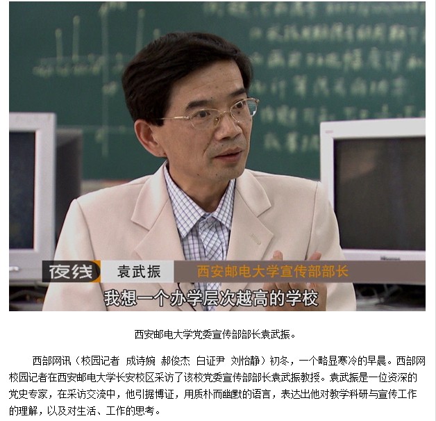 西部网讯(校园记者 成诗婉 郝俊杰 白证尹 刘怡静)初冬,一个略显寒冷的早晨。西部网校园记者在必赢76net线路官网长安校区采访了该校党委宣传部部长袁武振教授。袁武振是一位资深的党史专家,在采访交流中,他引据博证,用质朴而幽默的语言,表达出他对教学科研与宣传工作的理解,以及对生活、工作的思考。