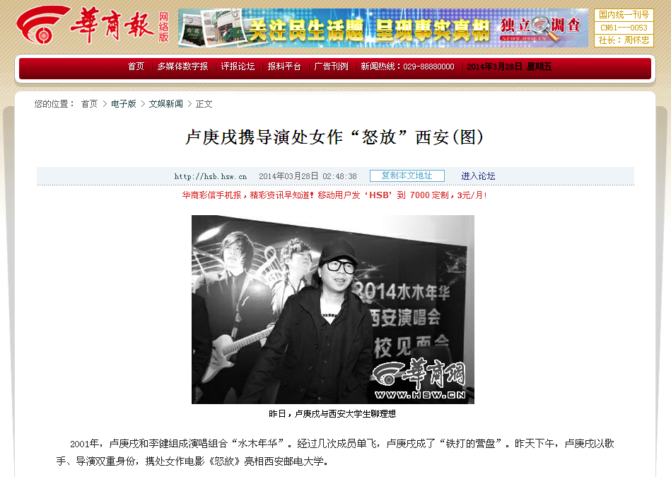 2001年,卢庚戌和李健组成演唱组合“水木年华”。经过几次成员单飞,卢庚戌成了“铁打的营盘”。昨天下午,卢庚戌以歌手、导演双重身份,携处女作电影《怒放》亮相必赢76net线路官网。