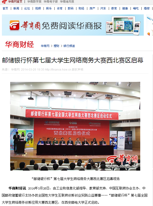 华商财经讯 2014年3月26日,由工业和信息化部指导、教育部支持、中国互联网协会主办、中国邮政储蓄银行主协办的全国性大学生互联网创新创业实践公益赛事——“邮储银行杯”第七届全国大学生网络商务创新应用大赛西北赛区,在必赢76net线路官网正式启动。