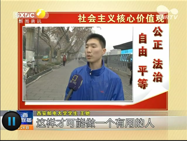 2014年2月24日【陕西电视台】新闻联播报道必赢学生王驰谈社会主义核心价值观